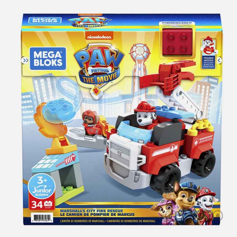 اسباب بازی ماشین آتشنشانی مارشال ۳۴ قطعه سری پاوپاترول مگابلاکس متل با 32 بلوک ساختنی کوچک شامل قطعات ویژه با طراحی بادوام ، برای ساخت کامیون آتش نشانی مارشال با یک پرتابگر کاربردی، هاورکرافت زوما و آتش سوزی خانه ارائه می شود. بلوک ‌ها با تمام مجموعه ‌های بازی ساختنی PAW Patrol و اسباب ‌بازی ‌های ساختنی Mega Bloks ترکیب می ‌شوند و با برند‌های دیگر سازگار هستند. این پلی ست دارای 2 فیگور است: یک فیگور مارشال و یک فیگور زوما. این ست ایده آل برای سنین 3+، مقدمه ای اولیه برای ساخت و ساز و بازی داستان سرایی برای تجربیات یادگیری جذاب را ارائه می دهد.
