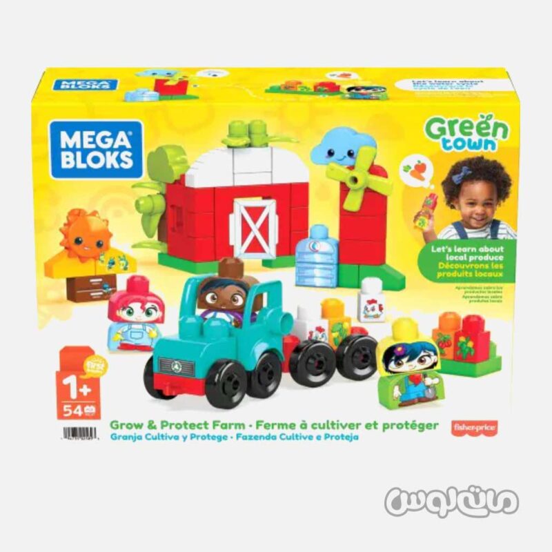 این ست ساختنی دارای 52 بلوک ساختنی بزرگ شامل قطعات ویژه و 2 محور چرخشی برای ساخت تراکتور، انبار، محصولات کشاورزی، کندوی عسل، آسیاب بادی چرخان و 3 کاراکتر است. بسته بندی اسباب بازی 100% قابل بازیافت است و از مواد بازیافتی ساخته شده است. بلوک ها با تمام اسباب بازی های ساختنی MEGA BLOKS برای سرگرمی بی پایان یادگیری سازگار هستند.